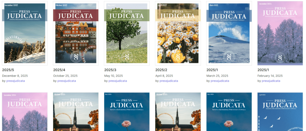 Press Judicata Press Judicata är Juridiska föreningens egna studenttidning. Läs tidningen genom att följa lila länken -> Läs Press Judicata